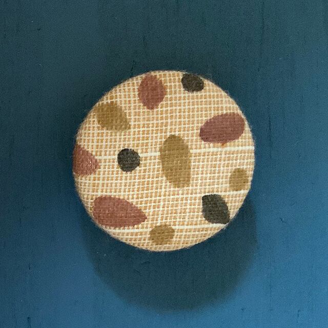 ステンシルを施した遠州木綿のくるみボタンをバッジにしたものです。名前は遠州ボタンとしていますが、筆でステンシルをしたオリジナル版画作品のバッジです。どこかノスタルジックを感じるバッジは複数をカバンなどにつけても素敵です。直径約3cm。